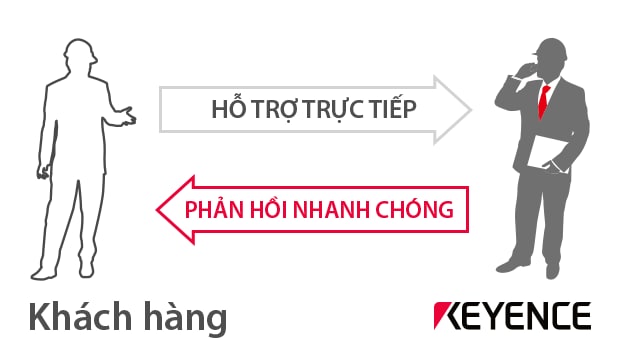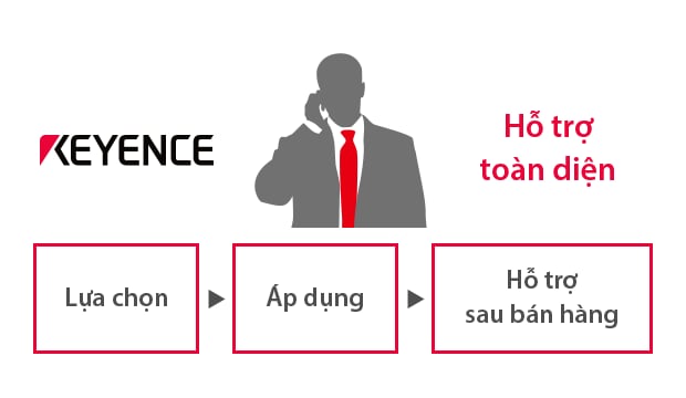 KEYENCE hỗ trợ khách hàng với kiến thức sâu rộng về sản xuất và tự động hóa tại chỗ của chúng tôi. Kỹ sư kinh doanh của chúng tôi sẵn sàng cung cấp hỗ trợ toàn diện ở mọi cấp độ kinh doanh, từ giai đoạn thiết kế và nghiên cứu, đến lựa chọn mẫu, vận hành dây chuyền với hướng dẫn tại chỗ, và sau khi đã tiếp nhận sản phẩm.