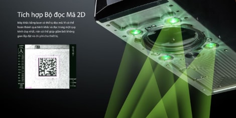 Tích hợp sẵn bộ đọc mã 2D và khả năng xác minh chất lượng code đã khắc (A/B/C/...), không cần lắp thêm thiết bị ngoài.