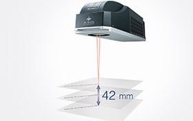Sê-ri ML-Z có thể lấy nét tại mọi khoảng cách bất kỳ trong phạm vi 42 mm. Do đó, bạn không cần phải thiết kế cơ chế phức tạp để điều chỉnh chiều cao của máy khắc khi chuyển đổi sản phẩm.
