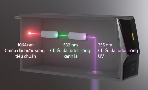 Bước sóng 355 nm thực hiện khắc có độ tương phản cao trong khi vẫn giảm thiểu hư hỏng cho phôi gia công.