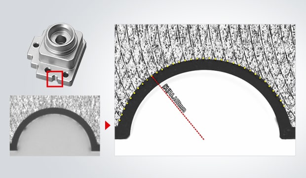 Đầu dò chạm áp lực đo thấp di chuyển tự do theo chiều dọc, chiều ngang và góc, cho phép đo các điểm mong muốn bằng cách chạm nhẹ. Có thể đo chính xác ngay cả những bộ phận có hình dạng 3D.
