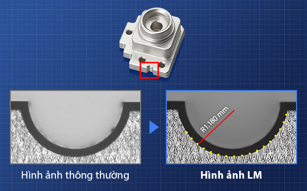 Hệ thống đo lường tức thì có độ chính xác cao dòng LM là một hệ thống kiểm tra tự động có thể thực hiện các phép đo với độ chính xác +/- 0,7 μm và độ lặp lại +/- 0,1 μm chỉ bằng một nút nhấn. Tương tự như Dòng IM, thiết bị này có tính năng phát hiện cạnh tích hợp với khả năng lấy nét và chiếu sáng tự động. Đơn vị cũng tự động ghi dữ liệu đo lường và tạo báo cáo kiểm tra chi tiết. Hình ảnh giới thiệu kiểu máy LM-1100 mới nhất của chúng tôi chứa thấu kính viễn tâm kép có độ phân giải cao để kiểm tra quang học chính xác và trường nhìn lớn 9 x 5 inch.