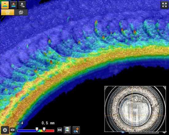 Khi tạo ảnh 3D, vị trí của từng biên dạng 2D được điều chỉnh theo hướng X, Z và θ. Điều này giúp loại bỏ tác động của rung động và lệch tâm cũng như các chỗ ngoặt và uốn cong của mục tiêu, tạo ra ảnh tối ưu để kiểm tra.