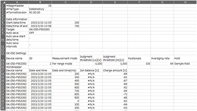 Lắp cảm biến SK-050 ở phía trước và phía sau thiết bị i-ôn hóa để ghi lại hiệu quả khử tĩnh điện – vốn có thể thay đổi tùy theo vật thể và môi trường – theo trình tự thời gian vào máy tính. Điều này rất hữu ích trong quá trình lắp đặt, chuyển đổi thiết bị và kiểm tra định kỳ.