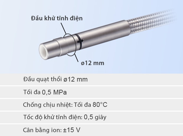 Khử tĩnh điện trên các khu vực ở khoảng cách từ 1 m trở lên bằng cách sử dụng đầu ⌀12 mm