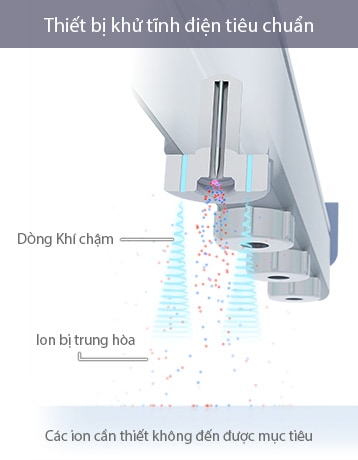 Các đầu dò được bảo vệ khỏi bụi và các mảnh vụn khác để cung cấp khả năng khử tĩnh điện chính xác trong thời gian dài nhất có thể. Khí siêu âm được phun đồng trục lên đầu dò điện cực, bao bọc đầu dò và ngăn bụi bẩn từ không khí bên ngoài xâm nhập.