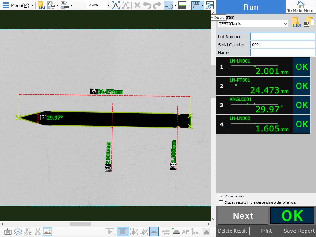 Có thể đo các điểm có đỉnh nhọn như kim bằng Sê-ri LM. Cũng có thể đo ổn định đường kính bên ngoài xy-lanh mà không cần đèn ốp nhờ ánh sáng truyền song song.