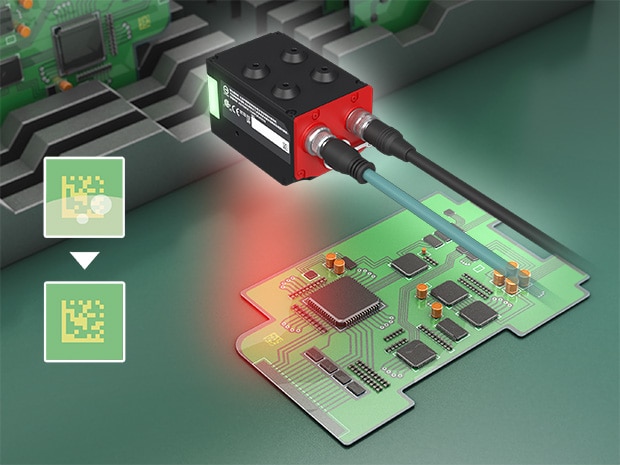 Khi mã được khắc trên bảng mạch qua xử lý bằng chất trợ dung hàn, phản xạ từ ánh sáng sẽ gây ra chói. Điều này đòi hỏi phải lắp đặt đèn chiếu sáng bên ngoài. SR-2000 được trang bị chức năng phân cực tự động nên có thể loại bỏ chói bằng cách chỉ dùng thiết bị chính. Điều này giúp người dùng không cần phải lắp đèn chiếu sáng bên ngoài.