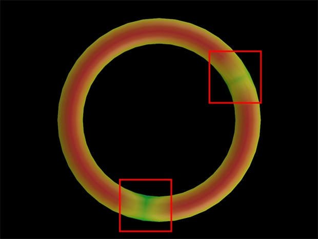 Việc kiểm tra vòng chữ O có sự khác biệt màu sắc rất nhỏ thường không ổn định khi sử dụng camera thông thường. Sê-ri LJ-S8000 có thể thu nhận dữ liệu 3D, cho phép phát hiện lỗi dựa trên sự chênh lệch độ cao thay vì màu sắc, từ đó giúp ngăn chặn việc xuất xưởng sản phẩm lỗi.