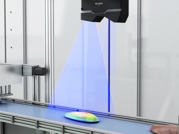 Để tránh tình trạng nấu chưa chín do sự thay đổi về kích thước hoặc thể tích của thịt tươi, các nhà máy chế biến thực phẩm ngày càng áp dụng kiểm tra 3D. Bằng cách sử dụng dữ liệu độ cao, có thể đo không chỉ chiều dài và chiều rộng mà còn cả độ dày của sản phẩm.