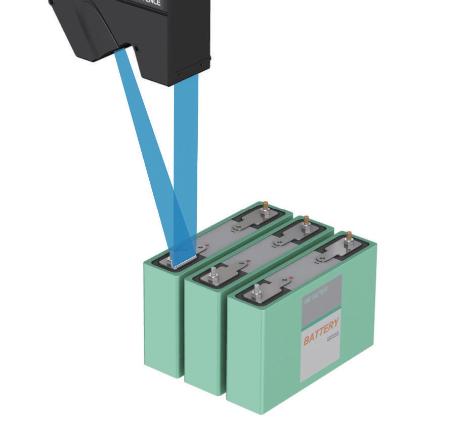 Đo độ chênh lệch chiều cao và khoảng bước giữa điện cực dương và điện cực âm. CMOS được sử dụng trong Sê-ri LJ-X có dải động rộng, cho phép thiết bị thực hiện đo ổn định trên nhiều vật liệu mục tiêu và màu sắc khác nhau.
