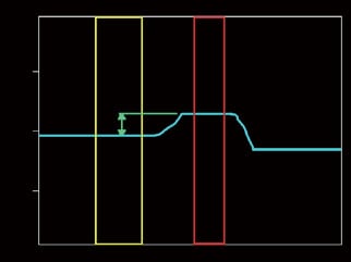 Đo tiết diện của mép gờ vòng đệm. Bằng cách chọn một trong các công cụ kiểm tra như Sự chênh lệch chiều cao/Chiều rộng hoặc Góc, người dùng có thể bắt đầu đo dễ dàng. Chụp ảnh có độ phân giải cực cao bằng cách sử dụng 3200 điểm/tiết diện để đo tiết diện chính xác cao vốn không thể thực hiện bằng phương pháp thông thường.
