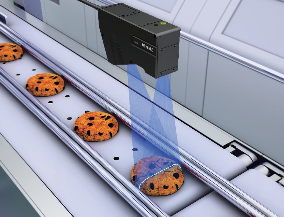 Sự thay đổi màu sắc trong sản phẩm, chẳng hạn như vụn sô cô la trong bánh cookie, khiến camera khó phân biệt giữa lỗi và họa tiết. Sê-ri LJ-X sử dụng thông tin chiều cao để chụp chính xác tiết diện, cung cấp kiểm tra lỗi đáng tin cậy mà không bị ảnh hưởng bởi sự thay đổi màu sắc.