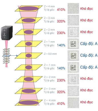 Cấp độ mã 2D thay đổi theo khoảng cách tiêu cự