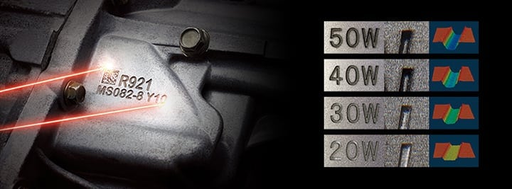 Ngõ ra laser cao hơn cho thời gian khắc ngắn hơn và chạm khắc sâu hơn. Kết quả cũng khác nhau tùy thuộc vào vật liệu được khắc, vì vậy ngõ ra tối ưu sẽ khác nhau giữa ứng dụng này với ứng dụng khác.