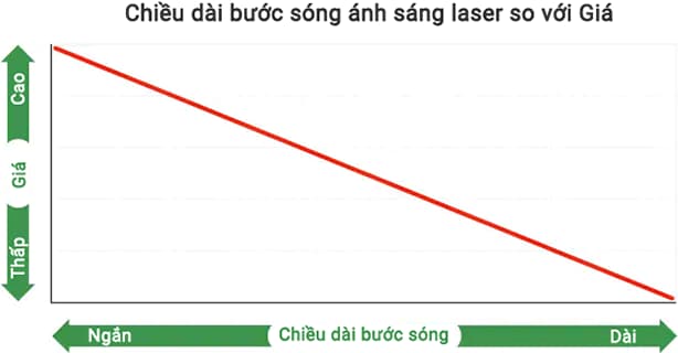 Nói chung, giá của máy khắc bằng laser tỷ lệ nghịch với chiều dài bước sóng ánh sáng laser.