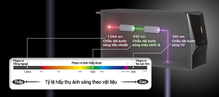 Khi chiều dài bước sóng laser ngắn hơn, độ tương phản được cải thiện và có thể giúp giảm thiểu hư hỏng sản phẩm. Kết quả cũng khác nhau tùy thuộc vào vật liệu được khắc, vì vậy chiều dài bước sóng tối ưu sẽ khác nhau giữa ứng dụng này với ứng dụng khác.