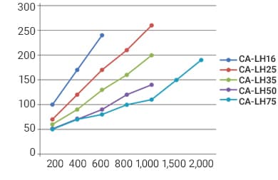 Biểu đồ thể hiện phạm vi trong đó đèn vệt có thể được sử dụng với độ sáng được đảm bảo ổn định. Kiểm tra trước xem có thực sự đầy đủ độ sáng hay chưa.