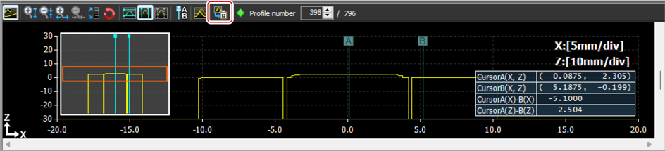 You can save image data obtained using the LJ-S Navigator, and copy profile data (X-Z plane, Y-Z plane) obtained to the clipboard.