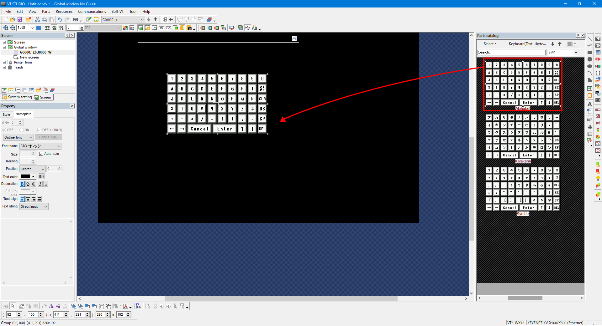 4. Arrange the keyboard just by dragging and dropping it from the part catalog. Adjust the position and size as necessary.