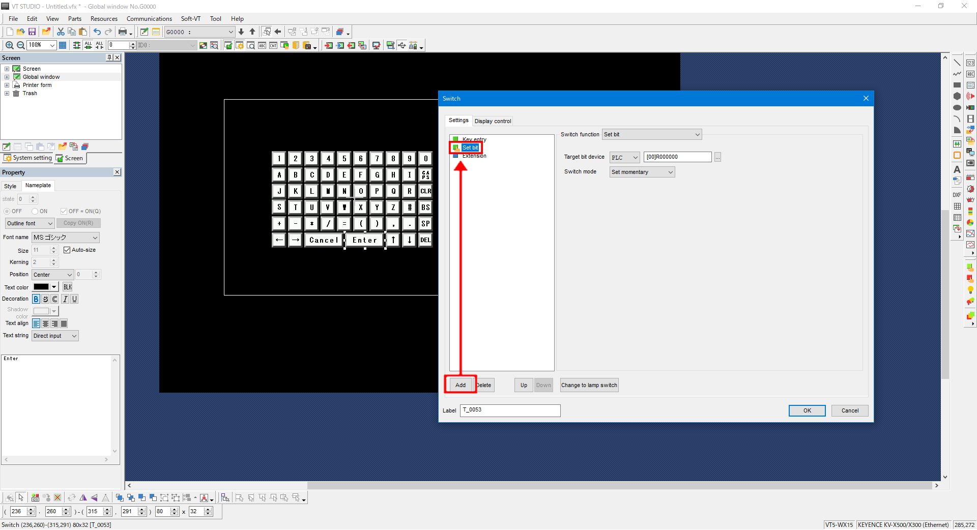 Open the setting screen, click [Add], and then select the added switch function.