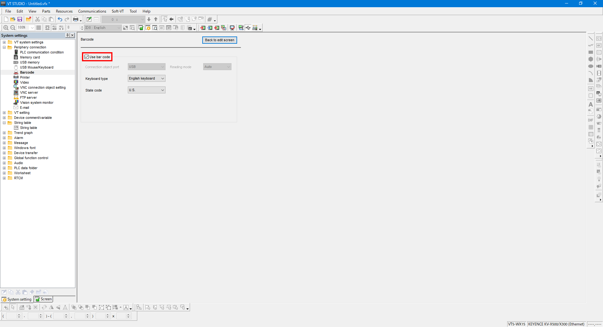 1. Configure the settings for connecting the VT5 and the barcode reader.